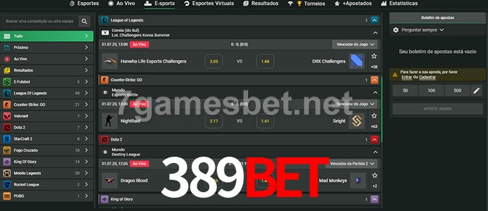 O 389bet oferece uma grande seleção de opções de apostas em e-sports com probabilidades competitivas